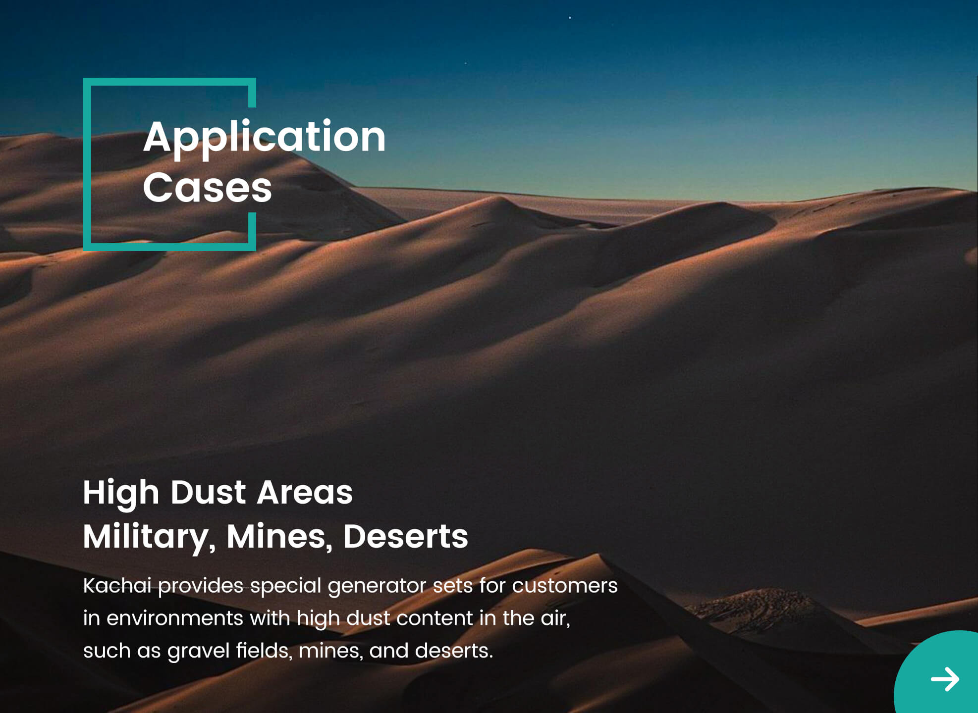 Kachai provides special generator sets for customers in environments with high dust content in the air, such as gravel fields, mines, and deserts.